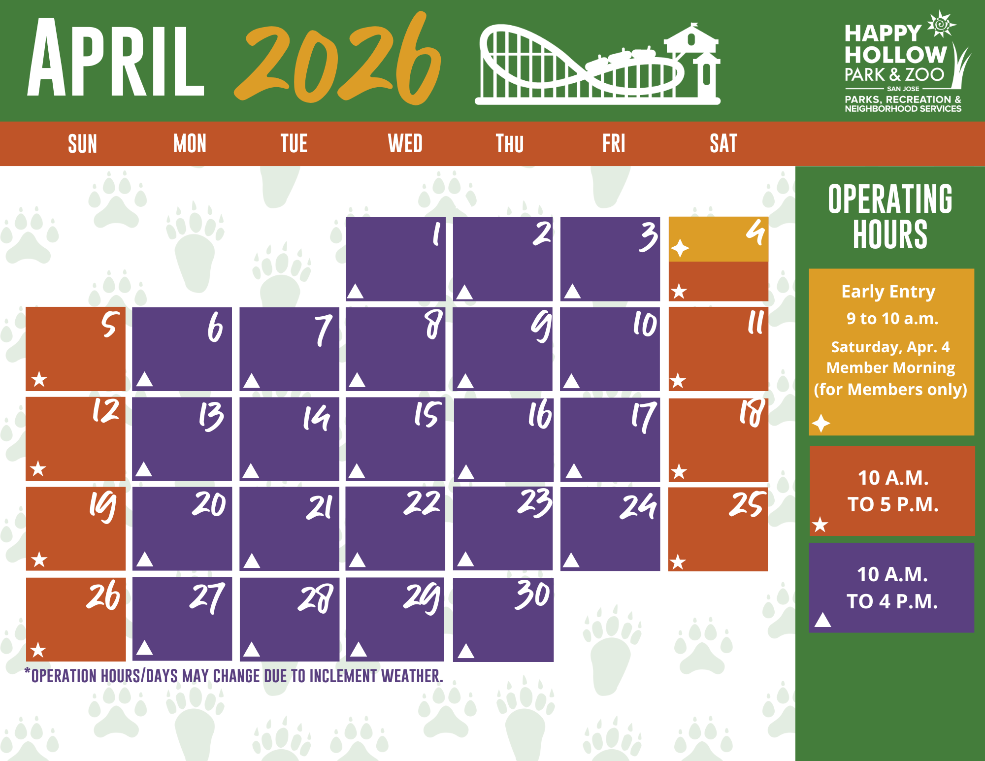 VTA bus #73 and #25 provide convenient and frequent bus service that stops in front of Happy Hollow Park & Zoo.