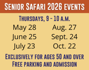 The 2025 season of Senior Safari is here! Join us the fourth Thursday of the month from May through October from 9-10 a.m., exclusively for ages 50 and over.