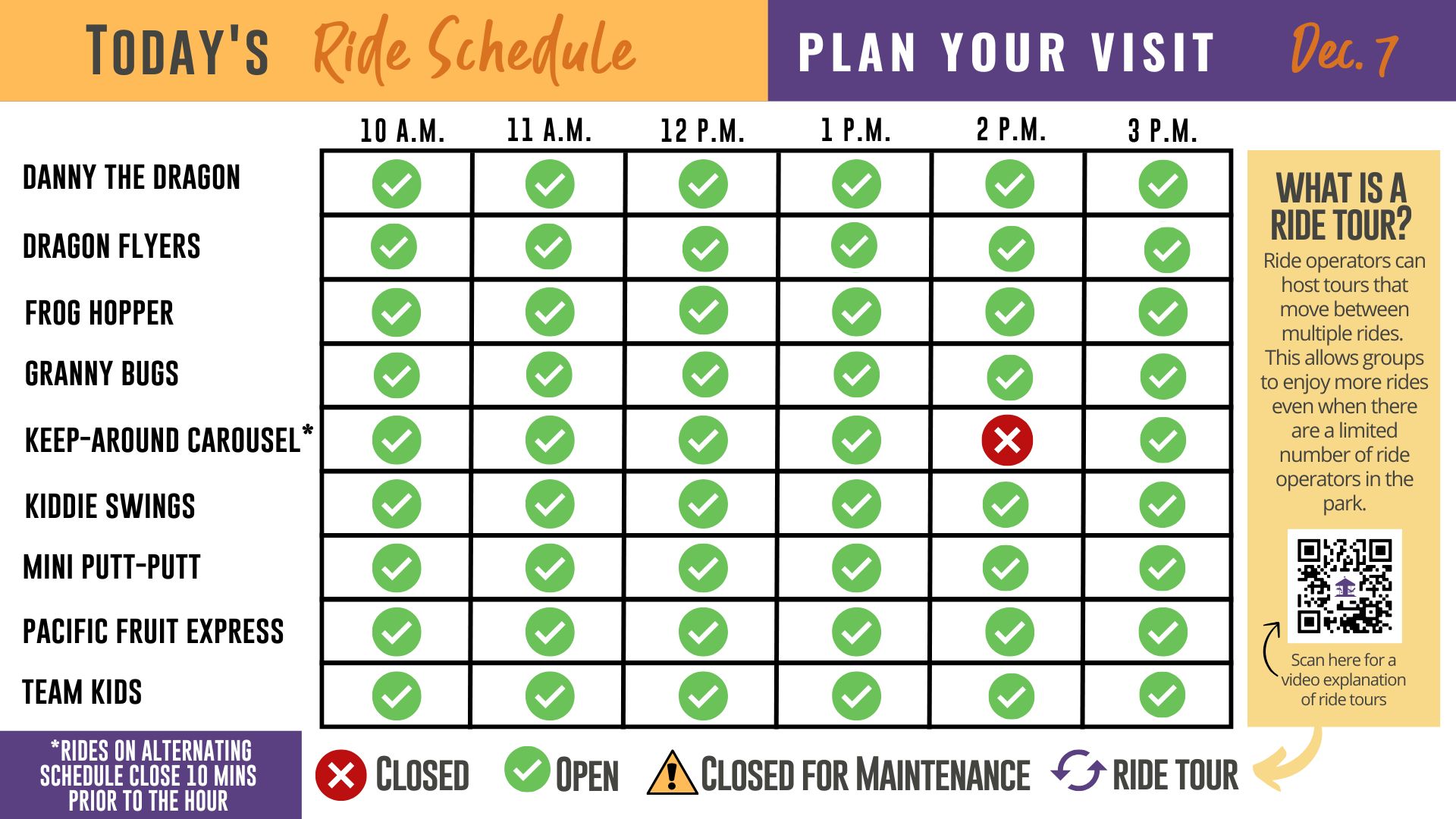 Please note that discounted admission tickets must be purchased in person. Admissions and membership sales end 30 minutes prior to park closing.